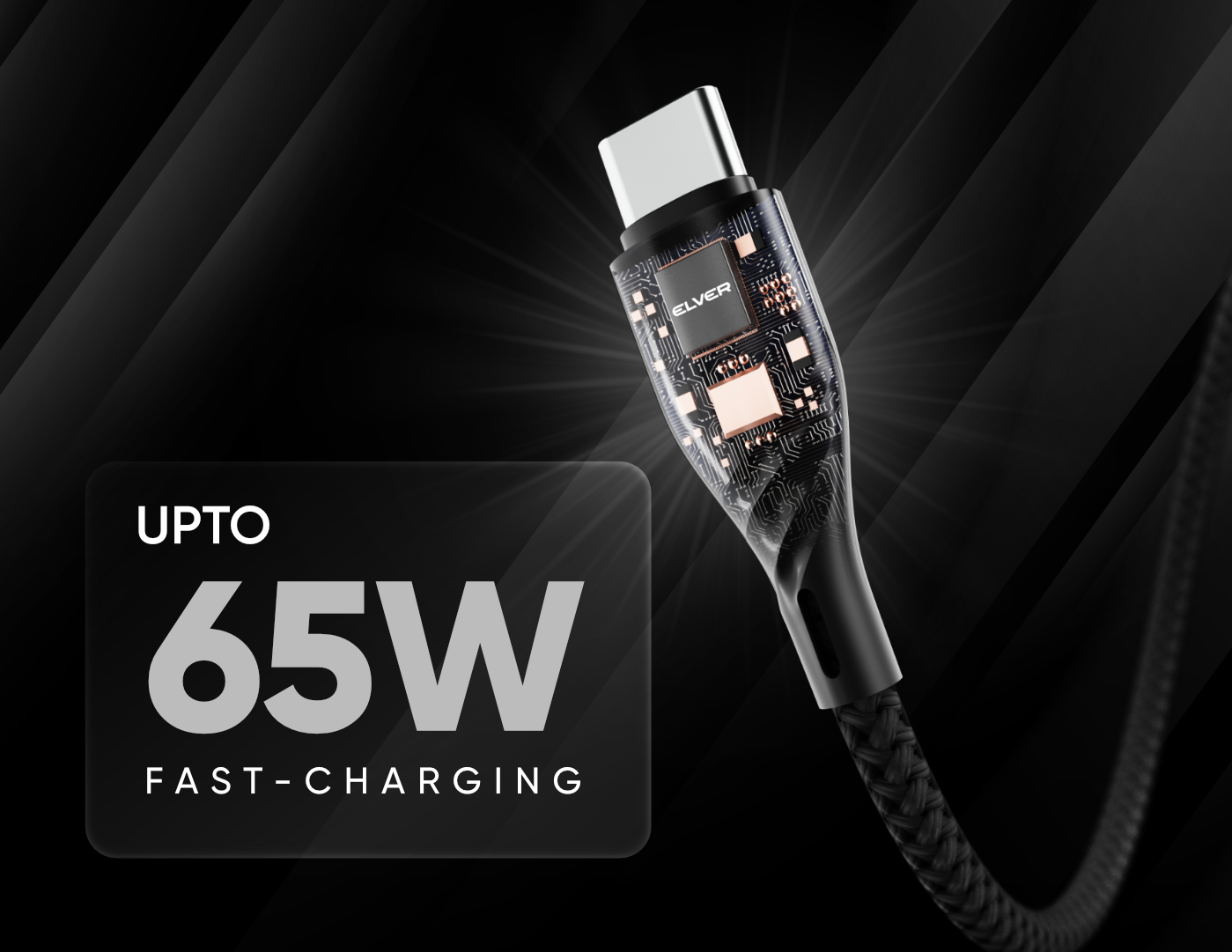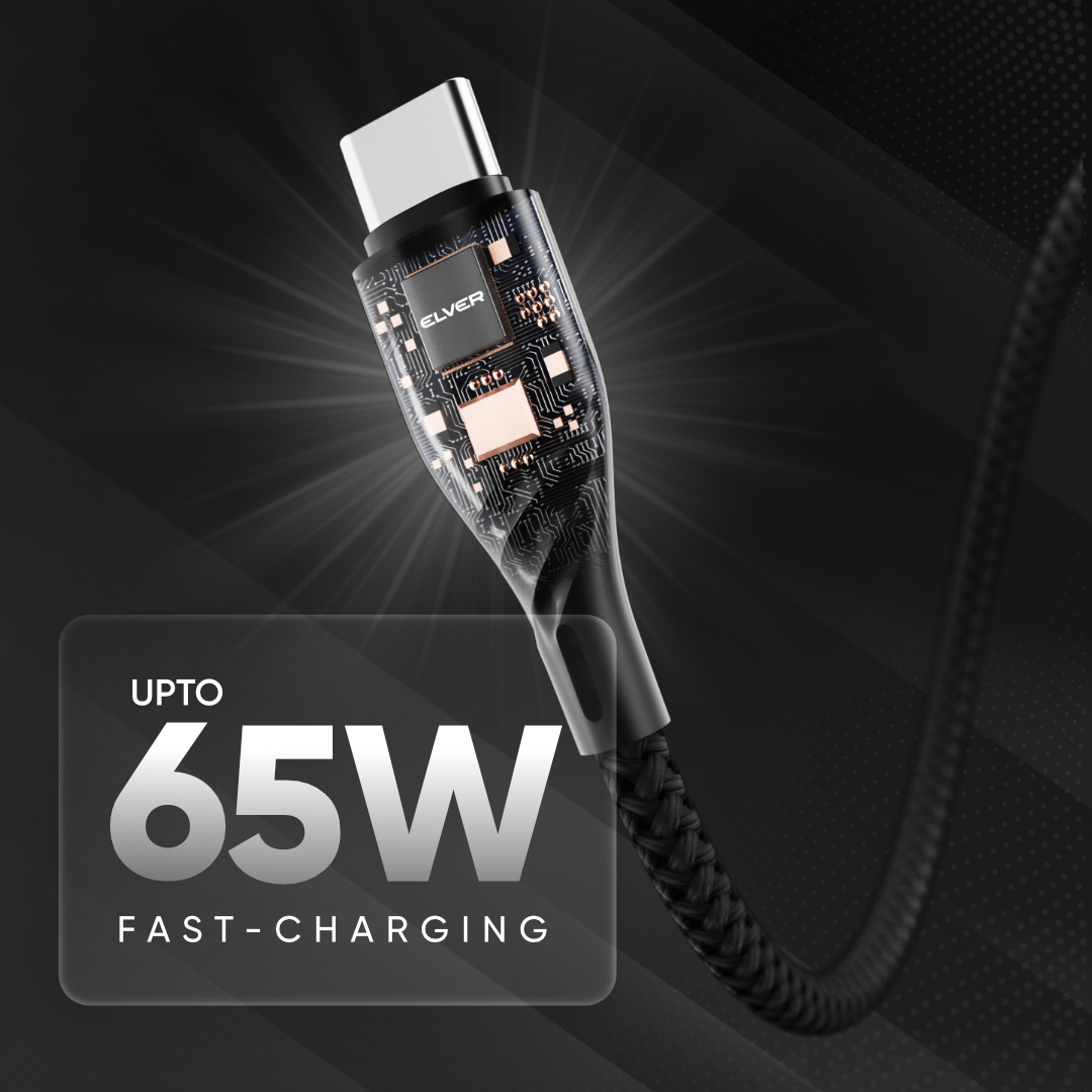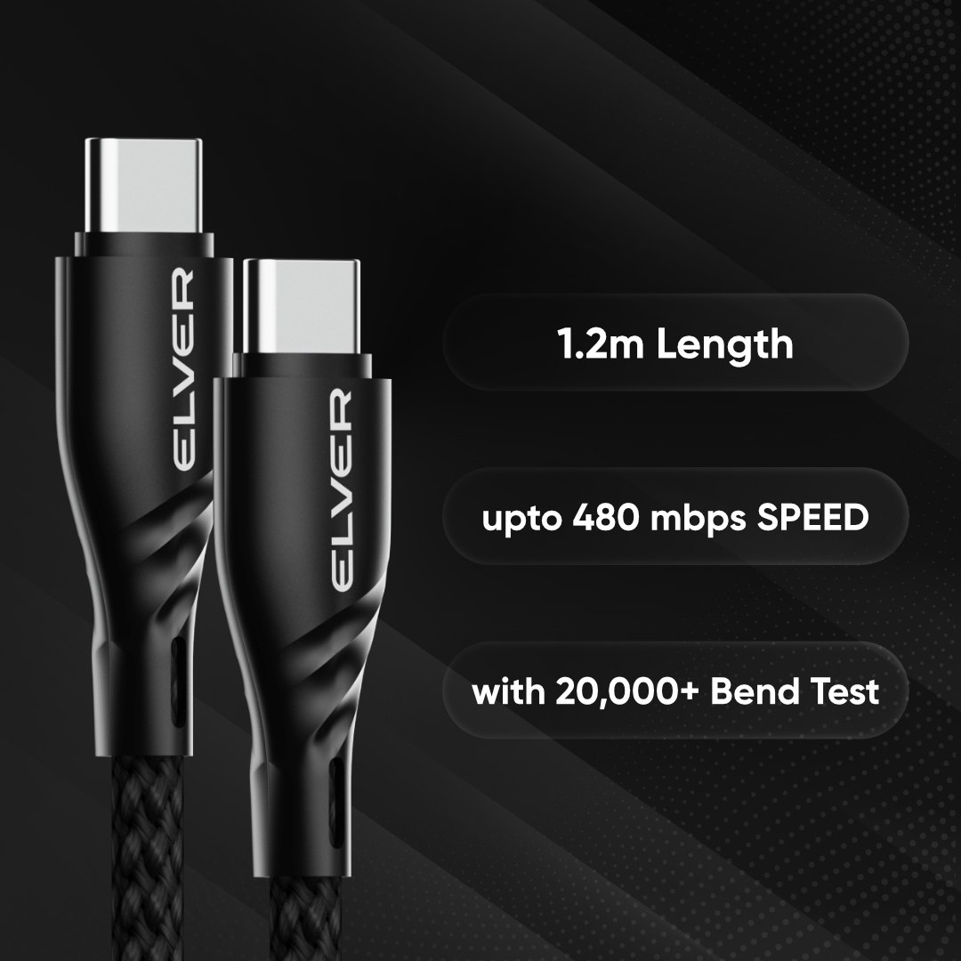 Elver Type-C to Type-C Cable - Upto 65W 1.2M Length