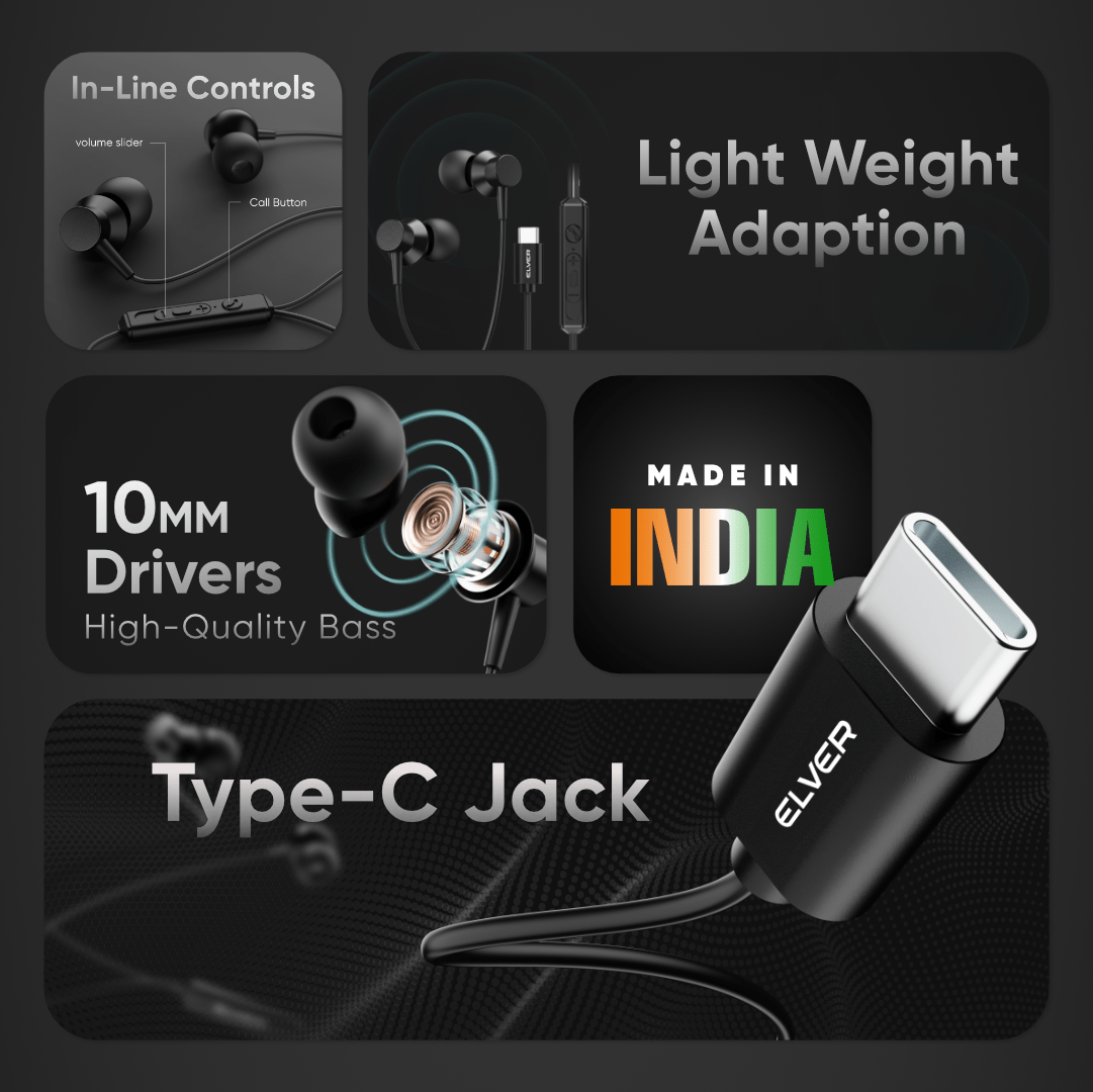 Elver Flow Wired Earphones with Type-C Jack & Mic